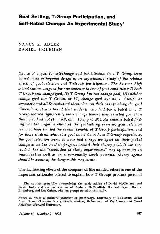 Figure 4: Daniel Goleman, who went on to help create the field of Social Emotional Learning (which goal setting was a part of) was writing papers for the NTL in support of using T-Groups.
