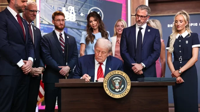 El presidente de Estados Unidos, Donald Trump, firmó una orden ejecutiva que crea un grupo de trabajo para los Juegos Olímpicos de 2028 en Los Ángeles.