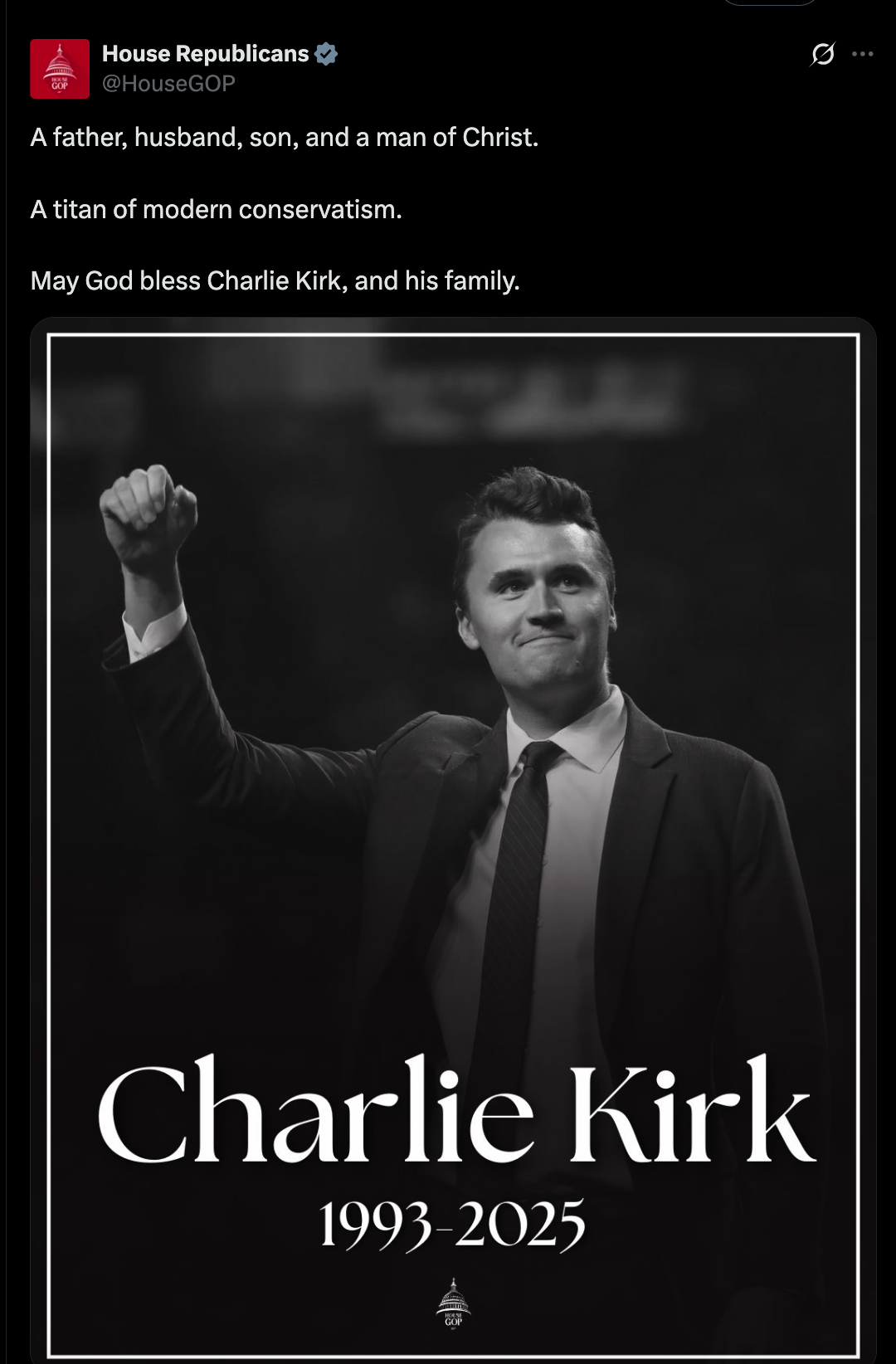 “My friend Charlie Kirk was murdered today by a coward. His life will be remembered for many wonderful things. He built it all with the power of the spoken word. He never used violence but was threatened every day with violence…