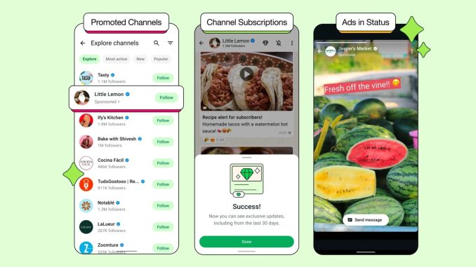 The upcoming changes will primarily affect the “Updates” tab, where ads will show up as full-screen placements within “Status” posts, ephemeral content similar to Instagram Stories, and through promoted channels in the app’s discovery directory.