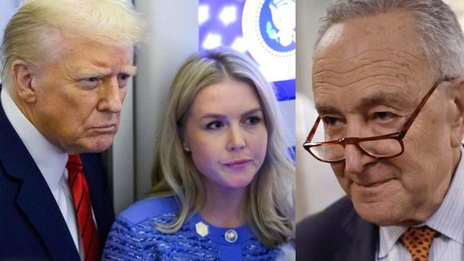 “We have seen many falsehoods pushed by Democrats such as Senator Chuck Schumer and some members of the media,” Leavitt said from the White House podium.